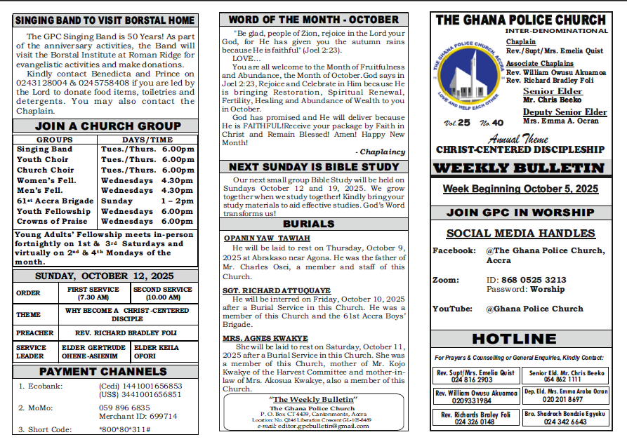 Police Church Bulletin October 05, 2025 Police Church Bulletin September 28, 2025 Police Church Bulletin September 21, 2025 Police Church Bulletin September 14, 2025 Police Church Bulletin September 7, 2025 Police Church Bulletin August 24, 2025 Police Church Bulletin August 17, 2025 Police Church Bulletin August 10, 2025 Police Church Bulletin August 03, 2025 Police Church Bulletin July 27, 2025 Police Church Bulletin July 20, 2025 Police Church Bulletin July 13, 2025 Police Church Bulletin July 06, 2025 Search