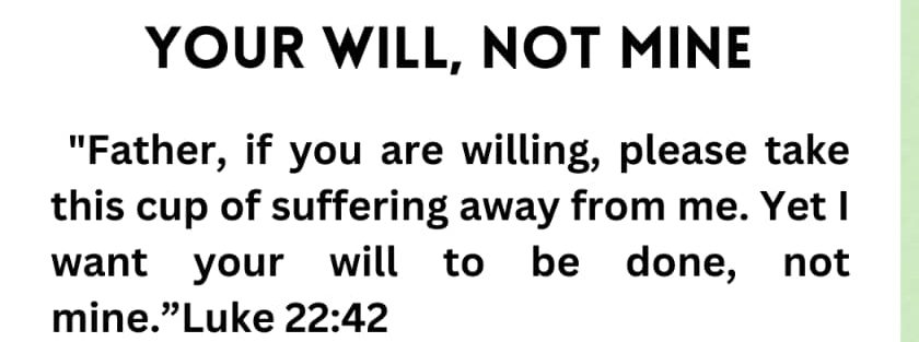 “Father, if you are willing, please take this cup of suffering away from me. Yet I want your will to be done, not mine.”